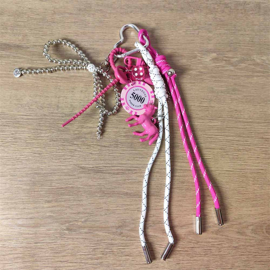 Y2K Rose Pink Chip Charm with Silver Bow Chain Keychain & Bag Pendant