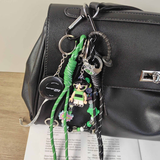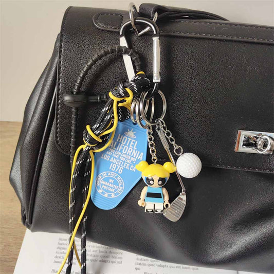 Powerpuff Girls Bubbles Cartoon Building Block Keychain - Golf Series Bag Charm for Girls