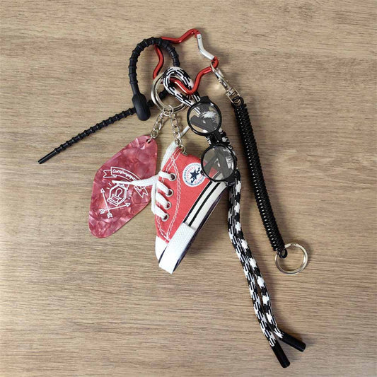 Vintage Campus Red Canvas Shoe Keychain with Black Rimmed Glasses Hotel Tag Bag Charm