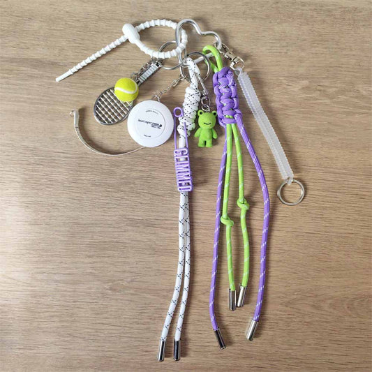 Adorable Fruit Green Crocheted Rope Tennis Racket Keychain with Cute Frog Charm