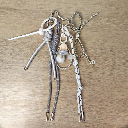 Christmas Tree Braided Rope bag charm with Alkaline Water Bread Knots Pearl Bow Keychains