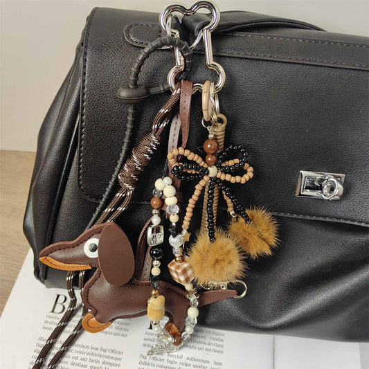 Maximalism Brown Series Sausage Dog Charm with Bow and Pom-Pom