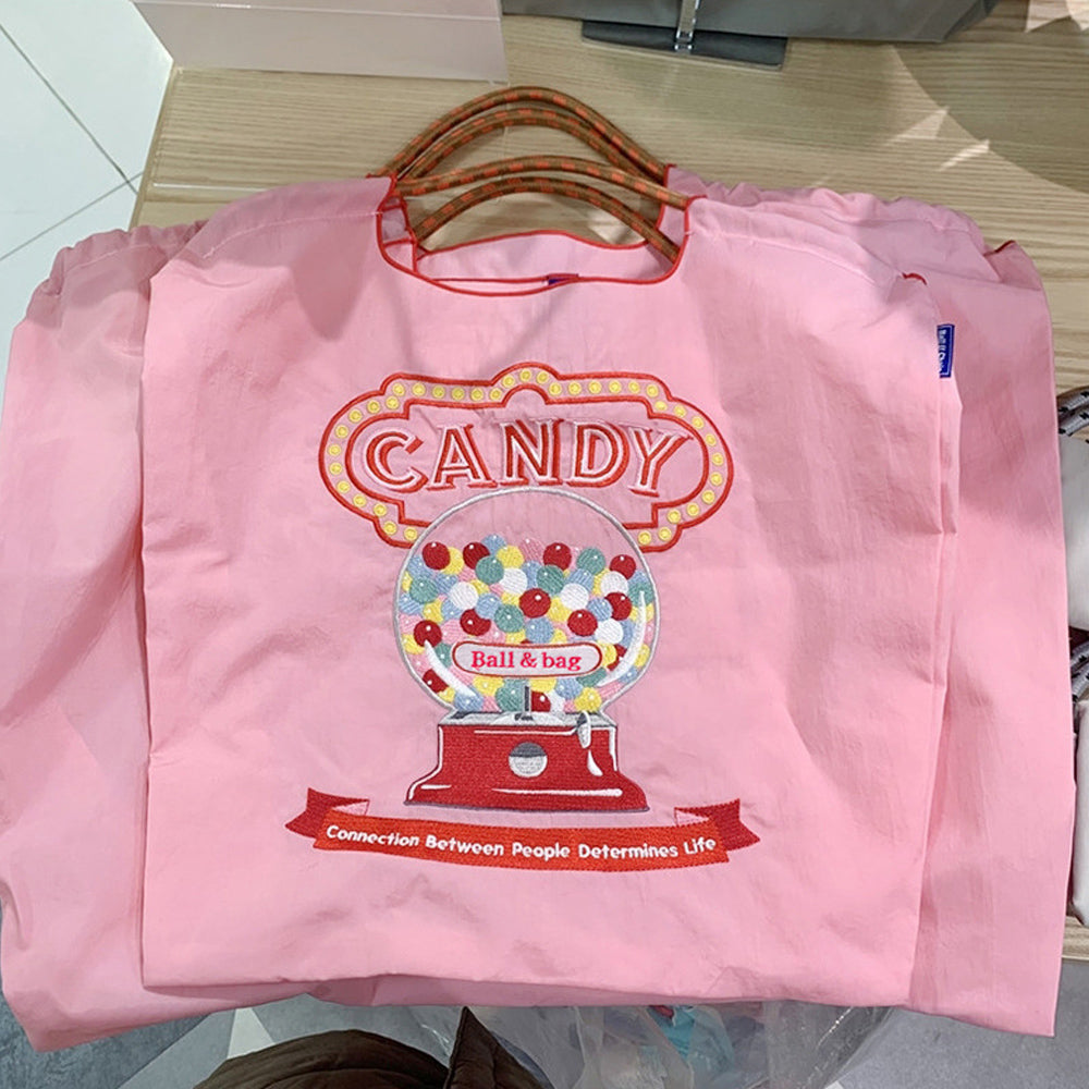 This Candy Machine Embroidered Eco-Friendly Shopping Bag is a stylish and practical addition to your everyday accessories. With its cute design and eco-friendly materials, it's perfect for those who want to look fashionable while being kind to the environment. The bag features a durable nylon construction, making it water-resistant and suitable for various weather conditions. Its large capacity and single-shoulder design make it convenient for carrying your essentials.