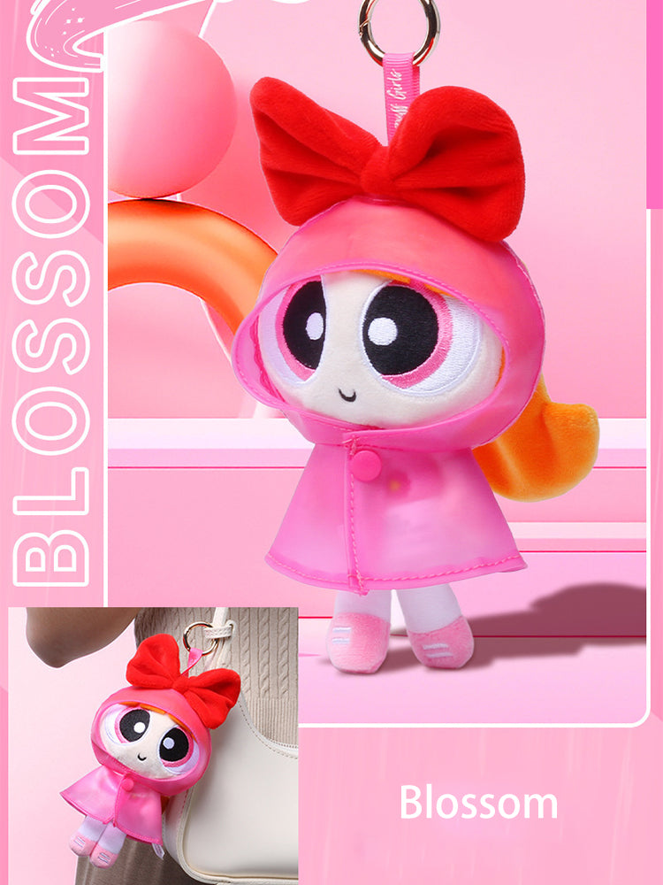 Cartoon Powerpuff Girls Raincoat Series Plush Keychain Cute Dolls - Blossom, Bubbles, Buttercup