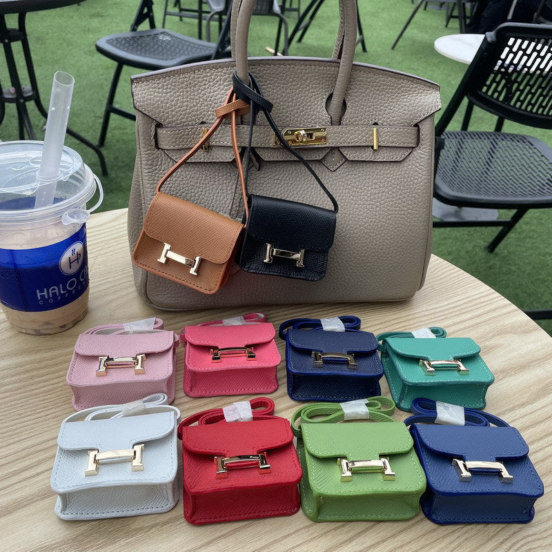 This genuine leather mini Constance bag charm is a delightful addition to your accessory collection. Featuring a classic H buckle design, it adds a touch of elegance and sophistication to any bag. Perfect as a keychain, an earphone case, or a car ornament, this charming piece is both functional and stylish. Its compact size makes it an adorable and practical accessory for everyday use.